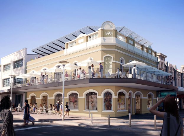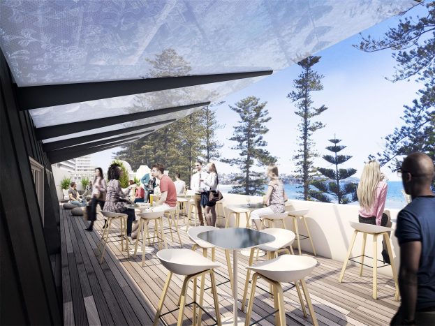 The upper level will be occupied by a restaurant and bar. Both will have breath taking views of the Corso and Manly beach.