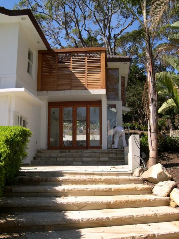 The renovation of this two level waterfront residence involved almost complete remodelling, additions and fit-out. Generous room volumes are filled with natural light from louvered skylights, verandahs are covered with translucent membrane roofs.