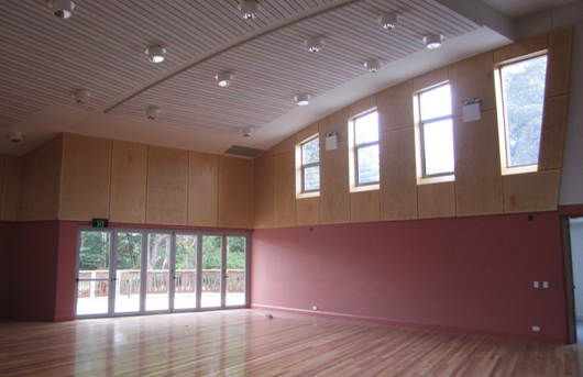The project packs a lot within a limited area and despite being two storey, maintains an intimate, engaging and friendly scale. The sinuous verandah edge almost follows the path a local python took across the building site! It embraces the lower level piazza and provides a community focus activated by the ever popular canteen below The well-equipped stage and acoustically modeled hall support a variety of uses without compromising the wish for a beautiful space.